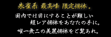 全く似ても似つかない個体になるのはちょっとおかしいかも。。。 もちろん!このことは当店にも言えることです! そこで、当ブランドでは、”なるものはなる、ならないものはならない”といったスタンスで、 お客様の要望により近い個体を提供できるように、ファーム名やブリーダー名、ブランド名にこだわらず、 一個体ごと、個体重視で血統や特徴を分類して、お客様におすすめしていきたいと思います。 販売からアフターフォローまで、手間ひまかけてお客様とじっくりとお付き合いさせて頂きたいと思っておりますので、