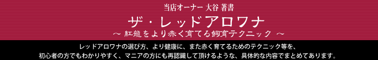 | ◎ザ・レッドアロワナ目次 ・紅龍の世界 ・レッドアロワナの世界へようこそ ・紅龍の魅力 ・紅龍図鑑 ・その他の紅龍図鑑 ・紅龍の成長比較図鑑 ・紅龍の飼育 ショップの選び方 幼魚の選び方 紅龍の飼育に必要な用品 アロワナの餌 紅龍水槽の水槽管理 赤く育てるには 基本的な管理 ・紅龍の混泳飼育を楽しむ ・アジアアロワナと混泳可能な魚 ・アジアアロワナの病気と治療 ・アロワナ・インテリア水槽 ・アジアアロワナをデジタル一眼レフで撮る ・レッドアロワナQ&A ・アジアアロワナの購入と登録 ・著者紹介 |