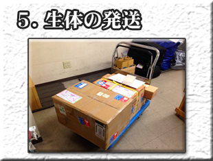 翌日到着エリアに限ります。 個体のサイズ等により、午前中到着エリアに限定させて頂く場合もあります。 エリアによっては、航空便の利用も対応致します。 とにかく、生体の安全を第一に考えますので、詳細はご相談のうえ決定致します。 ![]() ![]() ![]() *体長25pサイズ以下の個体は、120〜140サイズ区分、それ以上のサイズは160サイズになることが多いですが、 個体のサイズや、配送距離によって変わることもありますので、 ご購入魚決定時点で、正確な金額をお伝え致します。 ◎死着の場合について