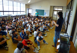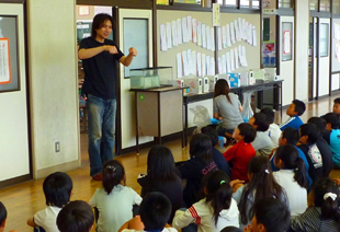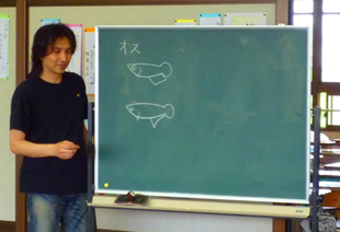| ◎小学校の理科のメダカの授業に参加〜 私が熱帯魚店をはじめた、20年近く前、 夕方頃になると、お店の前には学校帰りの小学生、中学生、高校生の自転車がいっぱい並び、 店内も子供たちの声でにぎやかだった記憶があります。 それが、最近ではその年齢層のお客様が、めっきり減ってしまったような傾向が感じられます。 ー子供たちと触れ合う機会との出会いー 皆さんも記憶にあるかもしれませんが、小学校5年生の理科の授業でメダカの飼育を行う課程があります。 その授業に、外部ゲストとして、 私が”メダカの飼い方説明会””わからないことを質問してみようコーナー”で、ボランティア参加致しました。 「子供たちに生き物の飼育を通じて命の大切さとか、自然環境の重要性を知ってもらいたい」という想いのもと、 校長先生や担任の方々を中心に、開催してみたのでした。 授業では、子どもならではの着眼点や発想も質問の中で飛び出し、 私自身も非常に興味深く、また考えさせられることもたくさんありました。 子供たちのこれからの成長に、なんらかの良い道しるべのひとつになってくれたら私もうれしく思いますし、 我々が大人として、また、生き物や自然に関わる業界の一員として、しっかりとそういったことの重要性を、 子供たちに教えていかなければいけないのではないかと思います。 このような会は、今までに何回か行ってきていて、 ある回は、当店の店長も参加させて致だき、何らかの手ごたえは感じたようです。 |