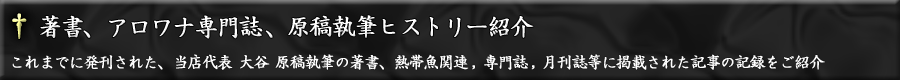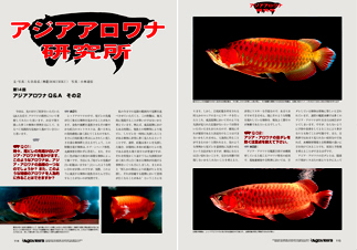 ◎アジアアロワナ研究所 連載 *AQUA WAVE Vol. 〜Vol. まで連載。 隔月刊で発売された、ピーシーズ社 "AQUA WAVE" で、”アジアアロワナ研究所” と名した、連載記事を掲載頂きました。 現在は既に終了しておりますが、月刊連載ならではの、細かいネタにも触れることができ、 ページ数も6〜8ページと、そこそこのボリューム感を持てたので、 内容的にも薄くなり過ぎずに書きあげることができました。 レベル的には、初心者〜中級者の方向けといったところですね。 2ヶ月に一回、そしてそのうちの何回かは、アロワニアの締切が同時に来るといったことで、 お店との業務との両立が大変でしたが、非常によい経験をさせて頂きました。 |