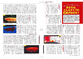 AROWANIA Vol.18 ◎当店お客様個体"極金龍クレンブルーSpecial" 表紙モデルとして掲載! ◎特集記事 執筆 ”アリフ氏が産み出す究極の重量級スプーンヘッド血統 超血龍” ・紅龍の発色と、照明、水質、水温の関係 ・紅龍の分類、体型、発色の関係 ・アリフ氏の産み出す"超血龍"の紹介 (当誌発売当時取扱い血統) ◎当店販売魚 多数掲載! ◎当店お客様宅訪問 掲載 ・福井県 田口様 |